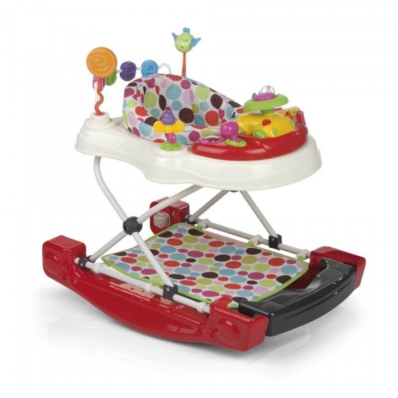 - La innovación de este producto es que se convierte en balancín y en andador a la vez. Para evitar lastimar los piececitos del bebé se coloca en la parte inferior un protector y su base se transforma en un divertido balancín.