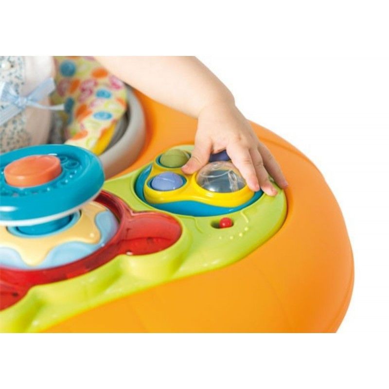 Cuenta con 3 posiciones diferentes: se puede usar con ruedas para aprender a caminar. Con la bandeja inferior se puede divertir presionando los botones con los pies. La bandeja de actividades deja todo el espacio libre para el movimiento del bebé y se adapta a sus necesidades mientras crece.