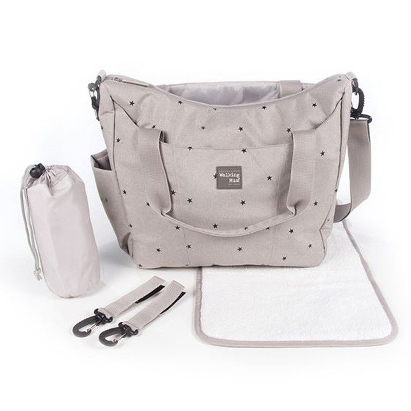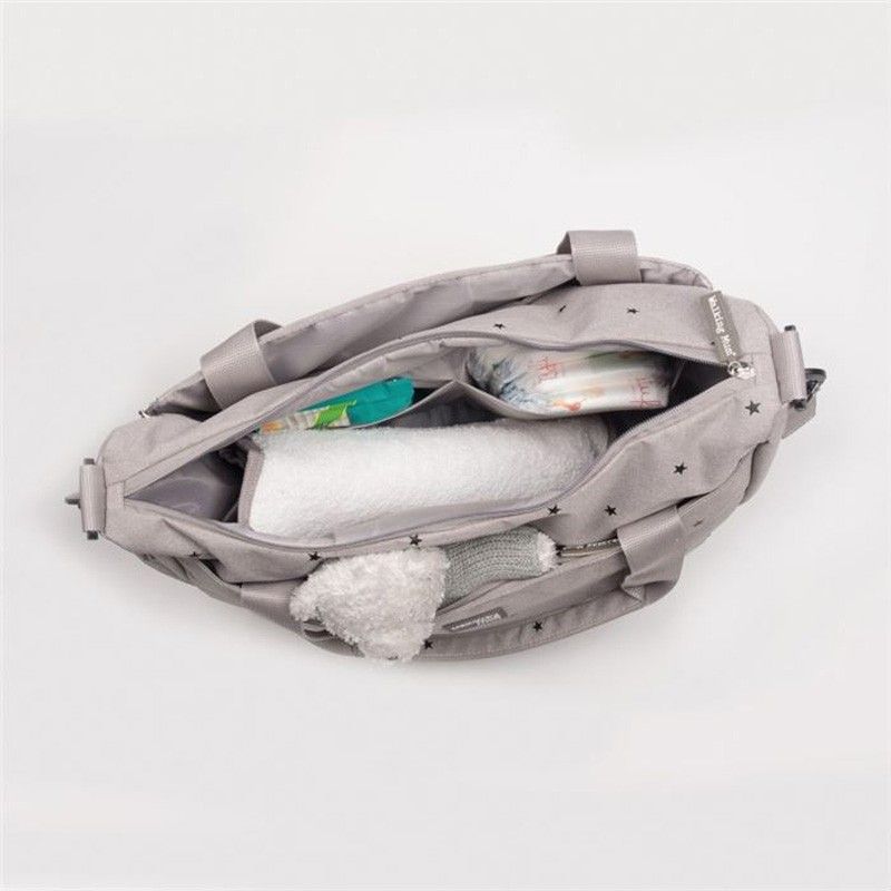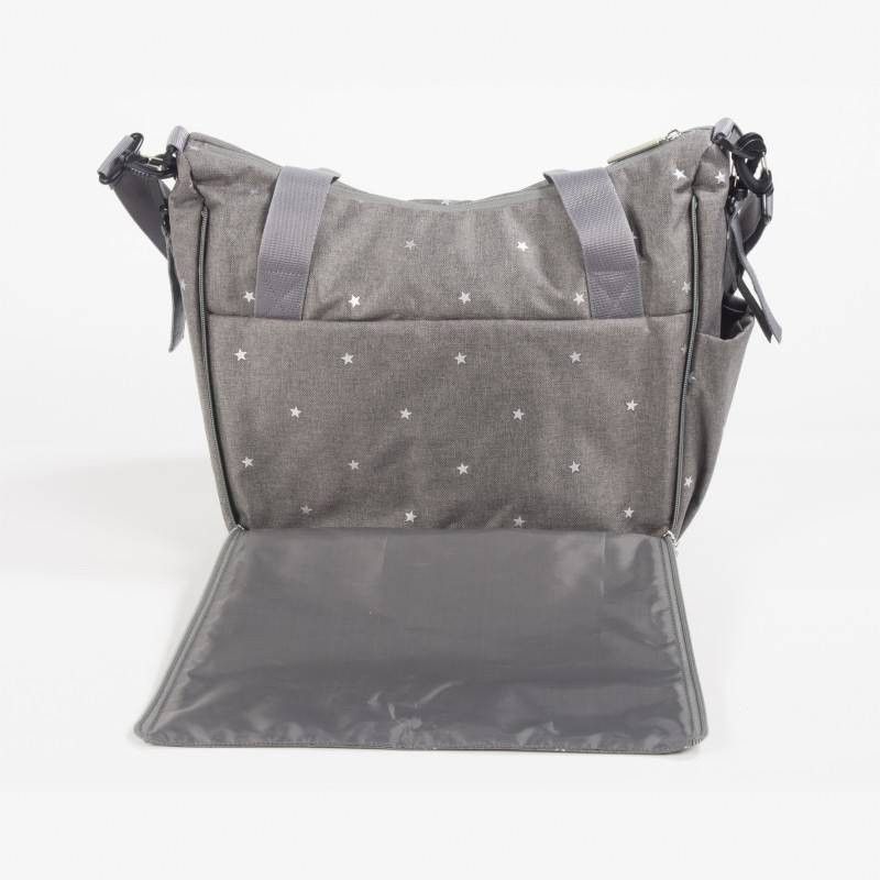 - La bolsa tiene un sistema universal de fijación, con una asa larga regulable para poder colgarla en el hombro que incluye 2 asas cortas ajustables que facilita la colocación en cualquier modelo de silla de paseo.