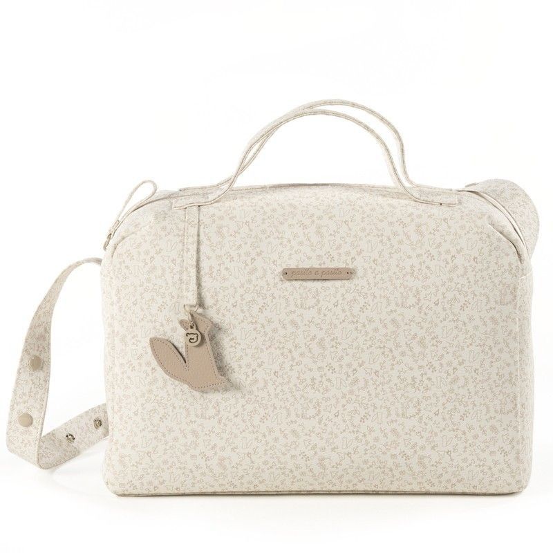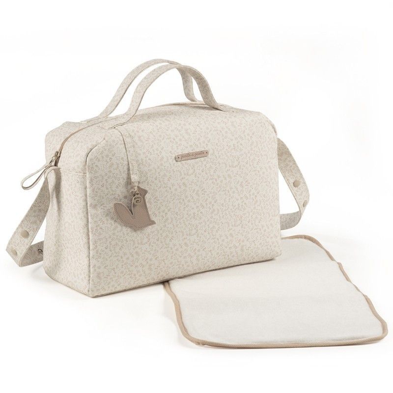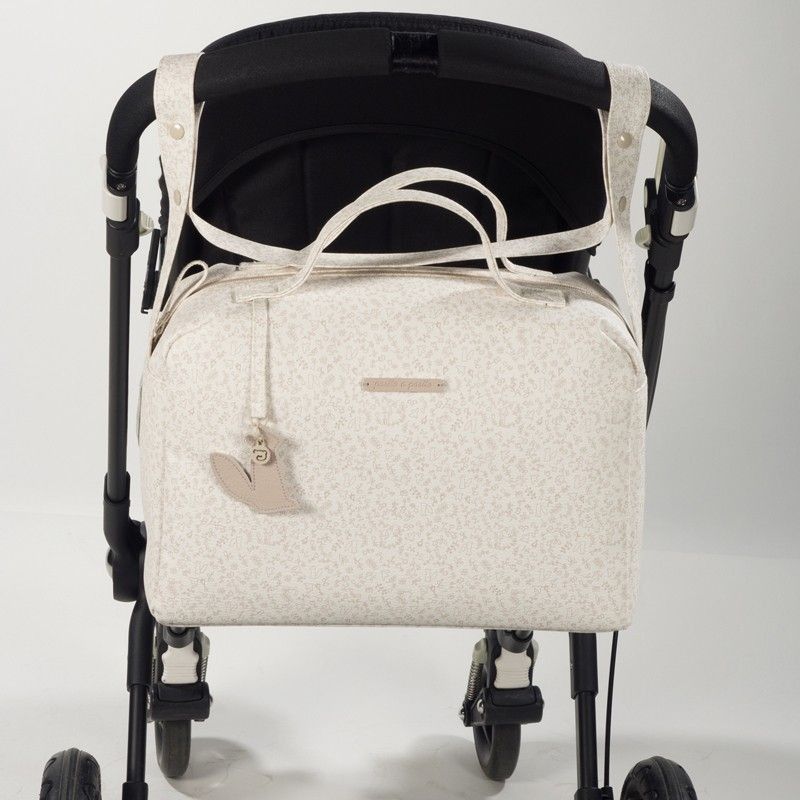 Bolsa canastilla o bolso para silla de paseo Forest en polipiel impresa beige.