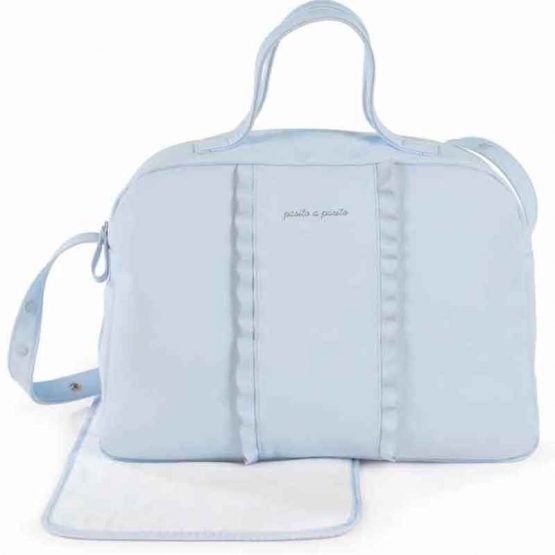 El bolso canastilla nido volante de pasito a pasito se convertirá en un producto imprescindible en tus salidas, ya que es un bolso elegante, muy practico y de gran capacidad, para llevar todo lo que necesite tu bebé. Incluye cambiador.
