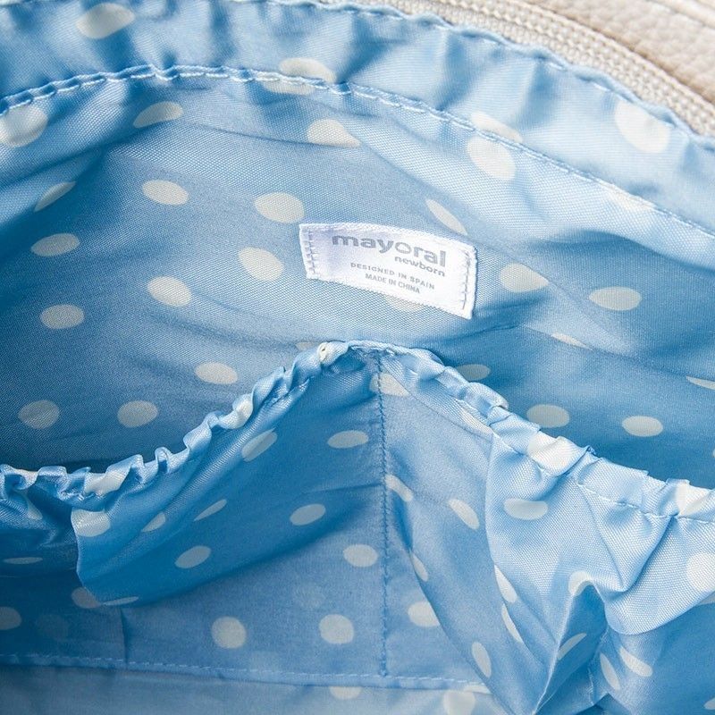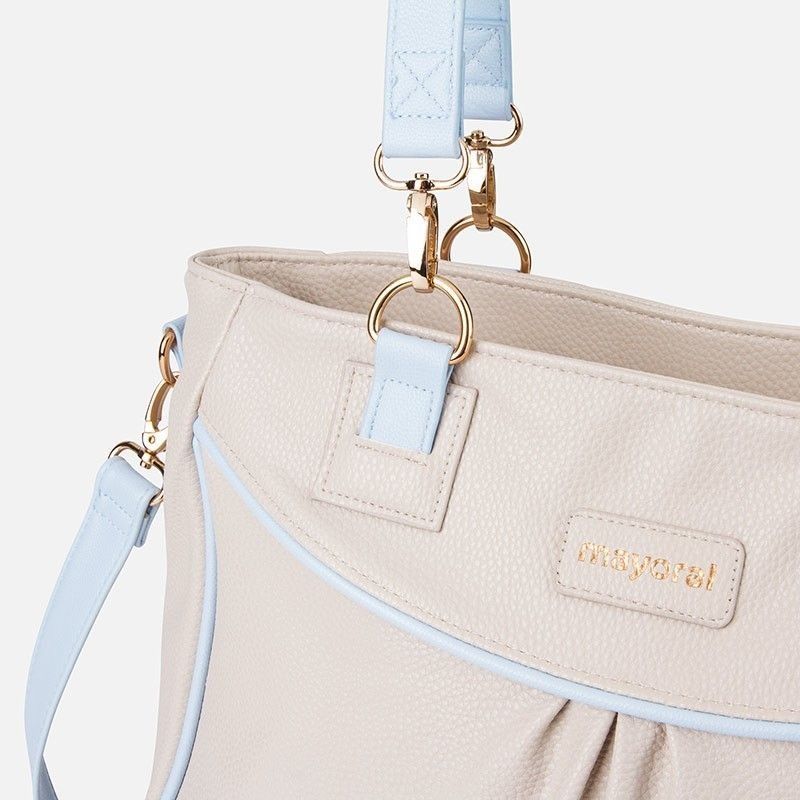 Lindo bolso de bebé en polipiel lisa con doble bolsillo interior en goma elástica.