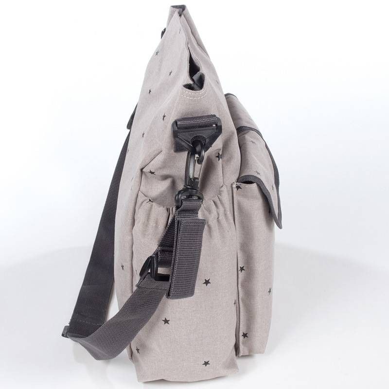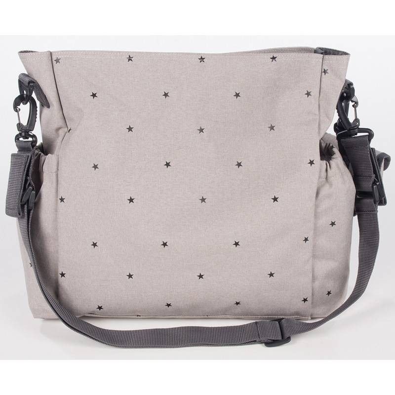 - La bolsa tiene un sistema universal de fijación, con una asa larga regulable para poder colgarla en el hombro que incluye 2 asas cortas ajustables que facilita la colocación en cualquier modelo de silla de paseo.