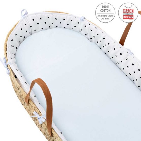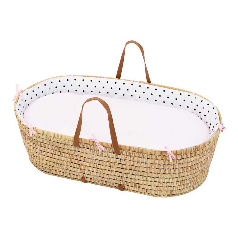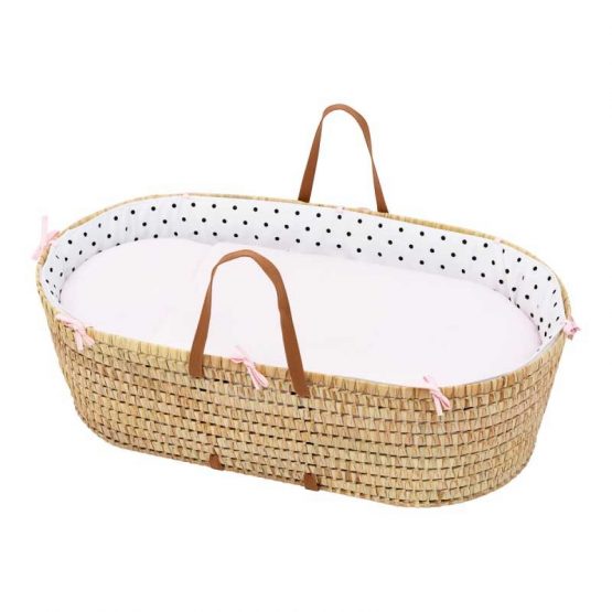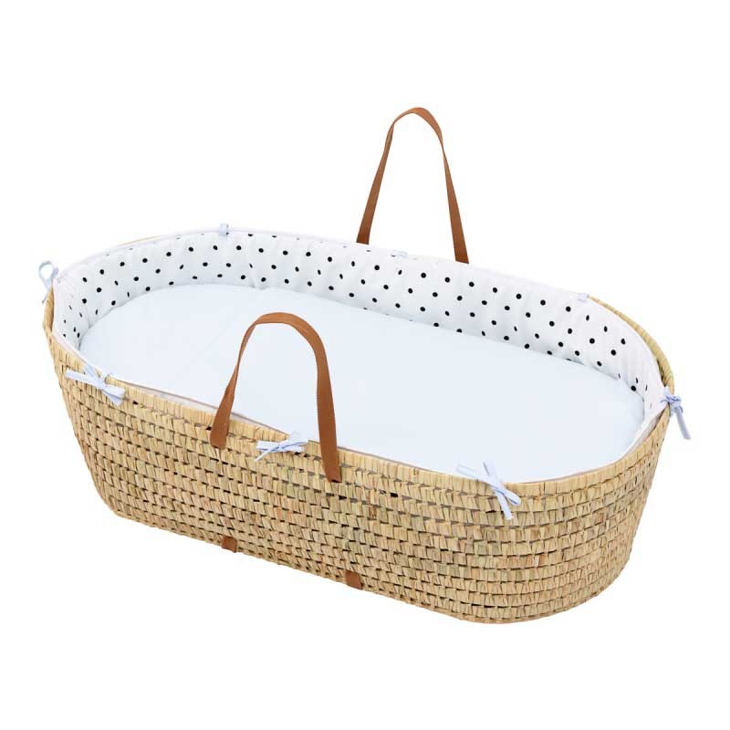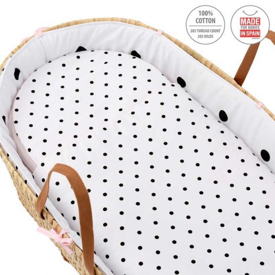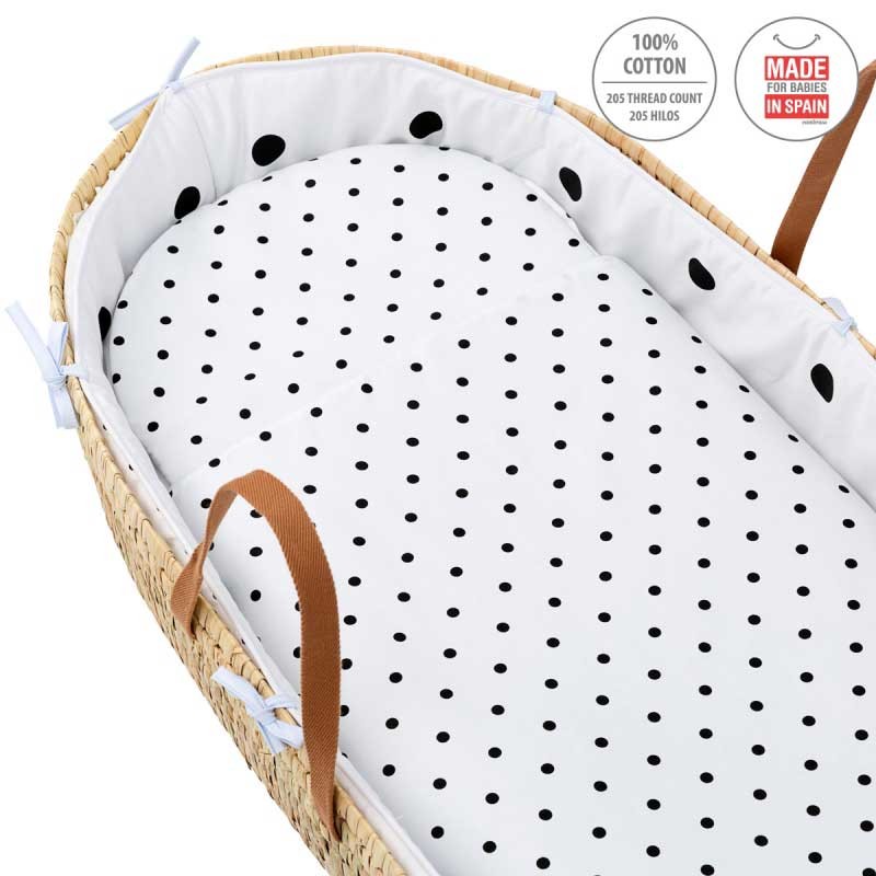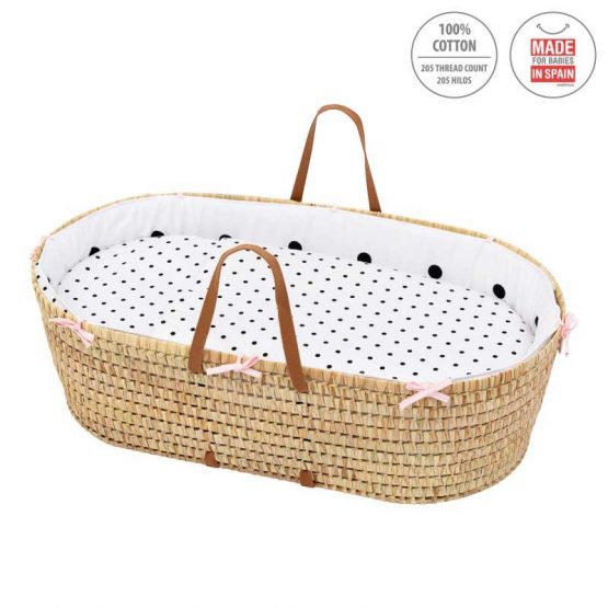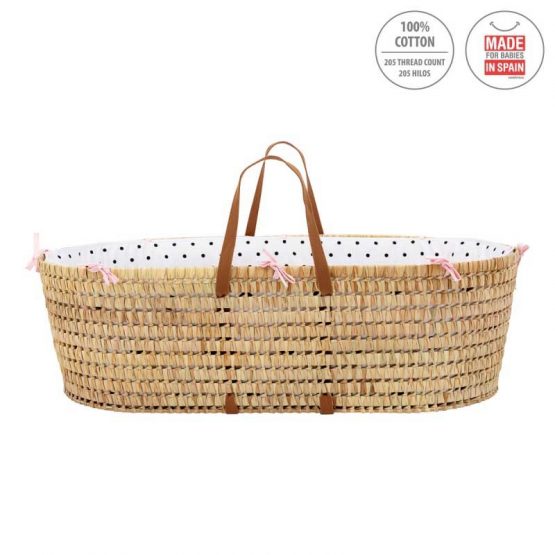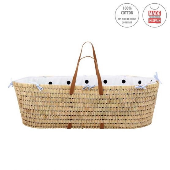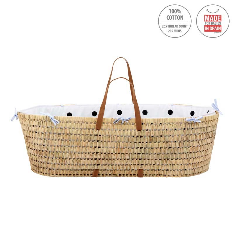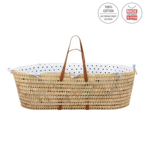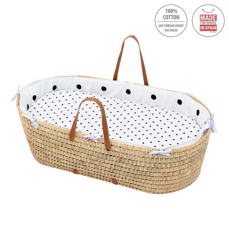 El Capazo de palma acolchado de Be Dots de Cambrass, está indicado para los primeros meses de vida del bebé y gracias a sus asas su trasporte es muy sencillo. Fabricado en España.