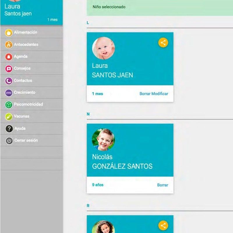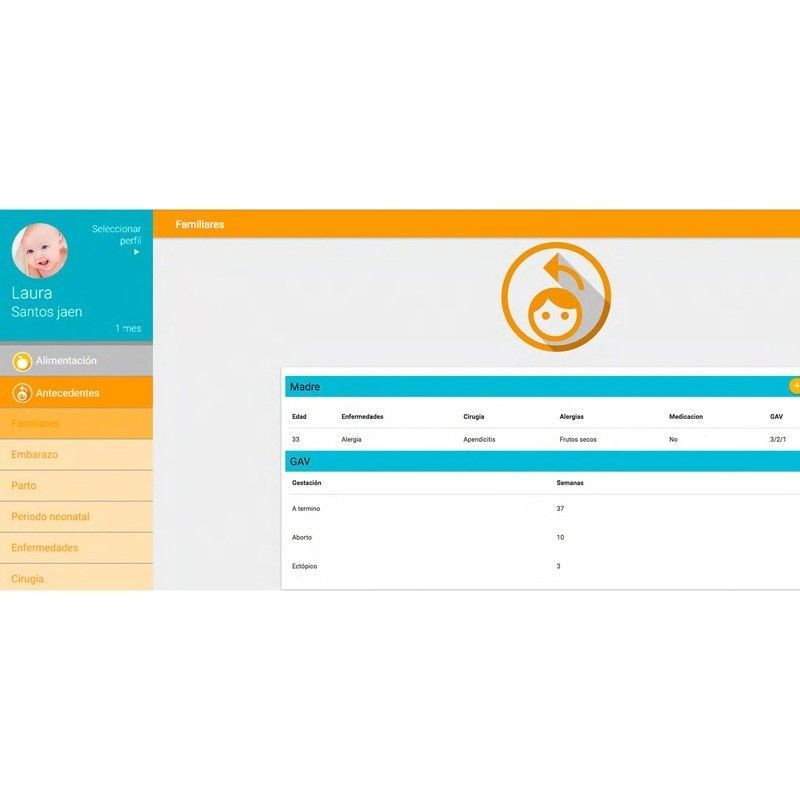 Incluye en una misma aplicación la información procedente de diversos documentos como cartilla del embarazo, carnet de vacunaciones, documento de salud infantil e historia clínica del pediatra. Esta aplicación móvil dispone a su vez de una plataforma web que permite a la familia el acceso también a través de su ordenador y facilita al pediatra la visualización e introducción de datos desde la propia consulta.