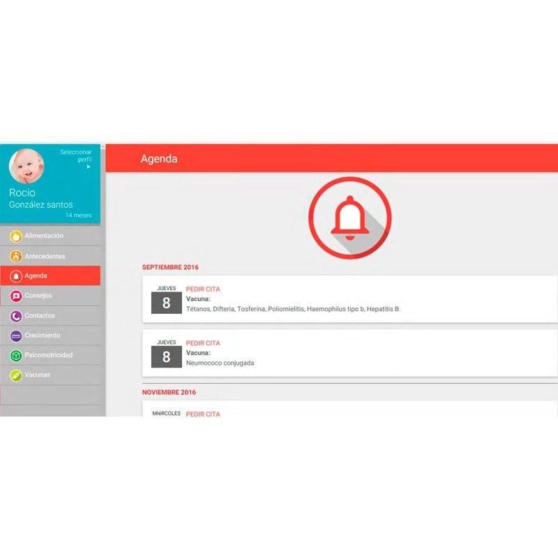 • Gestión de agenda y contactos de interés para la salud de tus hijos/as.