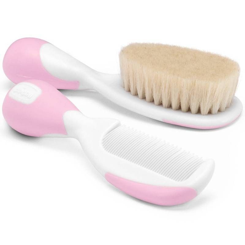 Las suaves cerdas naturales del cepillo y el peine con puntas redondeadas respetan la delicada piel del bebé.