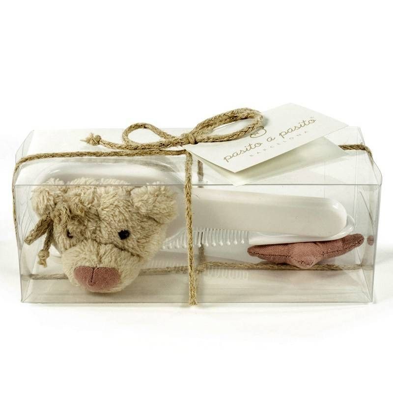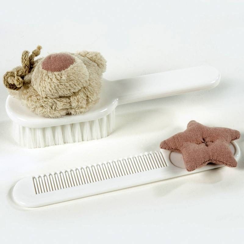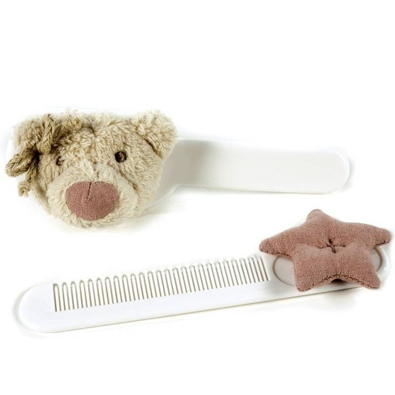 Set de cepillo y peine para el bebé con decoración de oso y estrella azul.