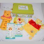 Es por este motivo que hemos creado esta cesta para bebés creciendo con Winnie Pooh, los bebes crecen rápido y que mejor forma de ir viendo su crecimiento que con una preciosa regla que se podrá poner en la habitación del bebé para ir midiéndole como crece , ademas para esos primero meses incluimos un anatómico chupete de silicona marca Disney , que ademas incluye cadena clip para el chupete así no lo perderás fácilmente , para estimular a tu bebé suave sonajero , y un tierno doudou que le acompañara mucho tiempo.