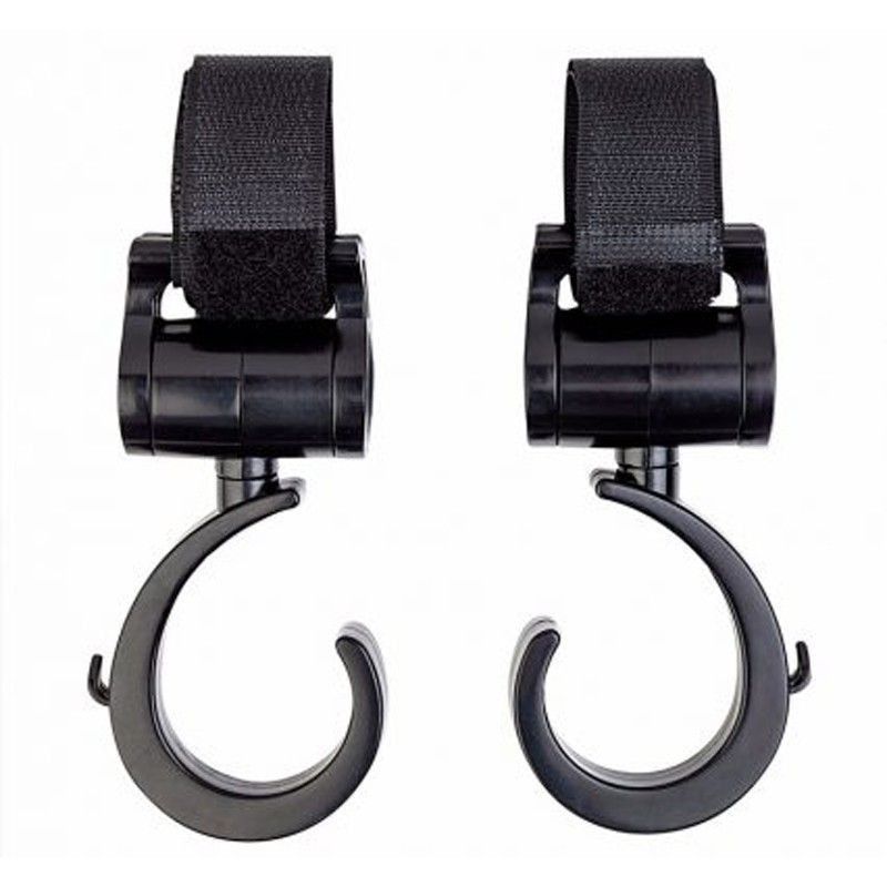 Tiene un práctico y sencillo sistema que se coloca en el cochecito, la cuna, el reposacabezas, del coche para colgar bolsas dejando las manos libres.