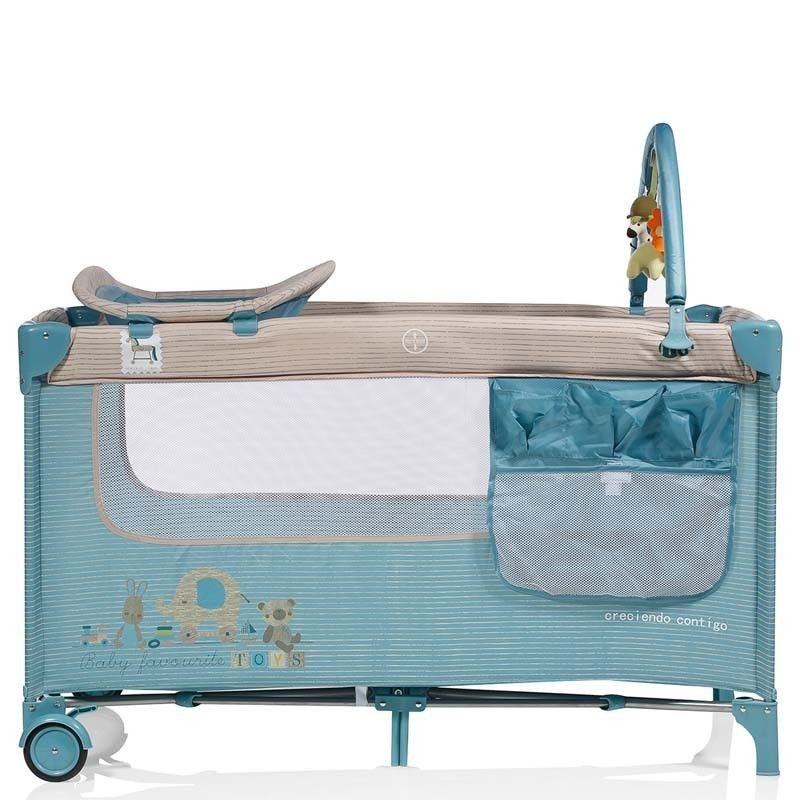 Viene dotada de un práctico juguetero para entretener al bebé y un cambiador muy útil para los padres a la hora del cambio de pañales.