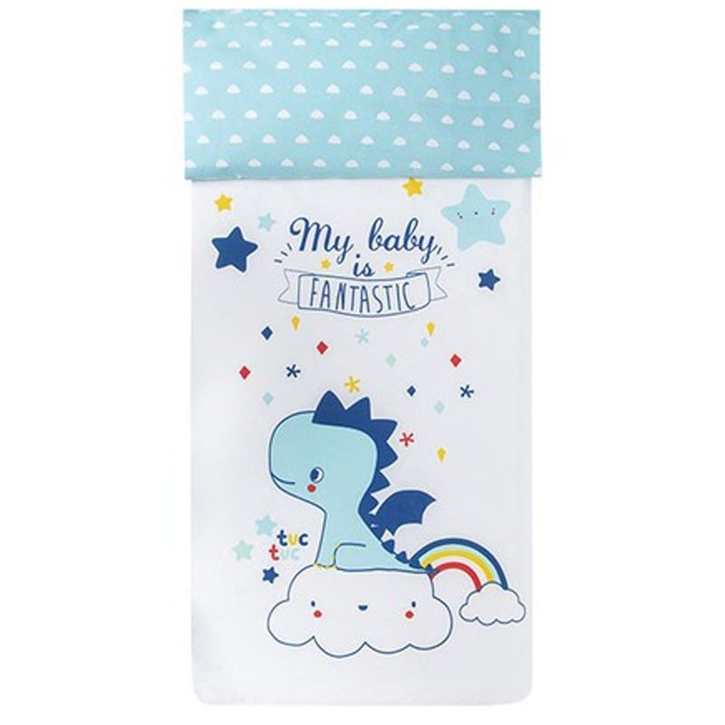Preciosa colcha nórdica 100% Algodón de gran espesor y calidad, su doble estampado ofrece la posibilidad de ser reversible, se adapta a cunas de 120cm.