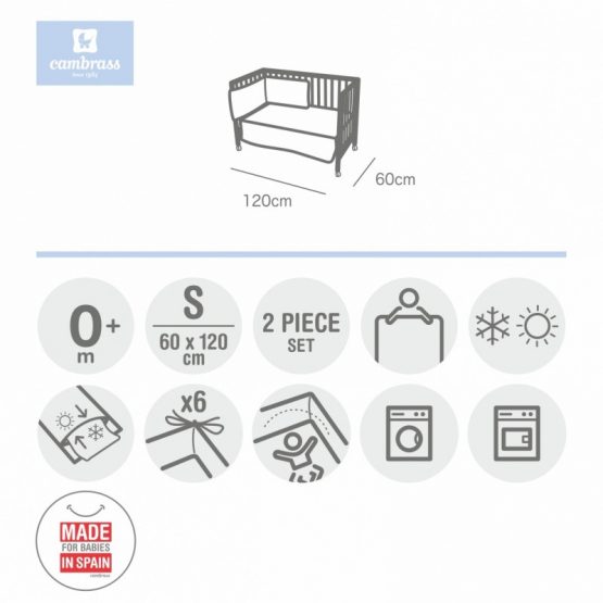 - Cambrass confecciona este juego de dos piezas para cunas de 60×120 centímetros.