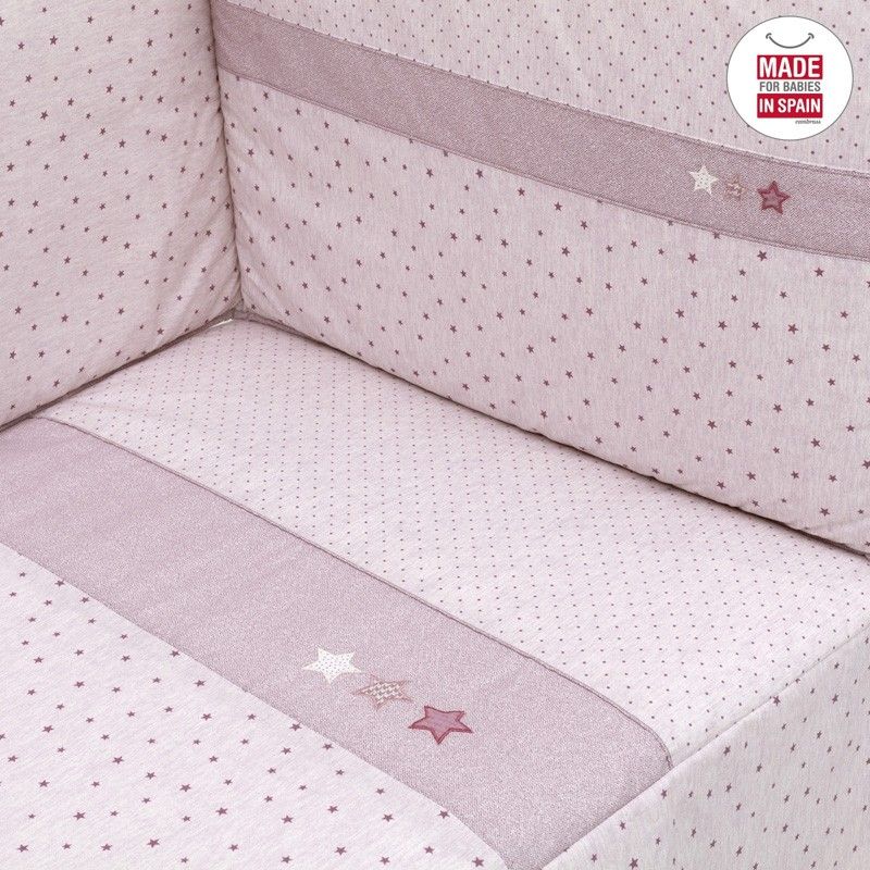 - El protector, fabricado con tejido cuyo interior está acolchado con fibra hueca para amortiguar los posibles golpes del bebé contra la cuna, los cuales se producen por los simples movimientos del bebé cuando está dentro de la cuna.