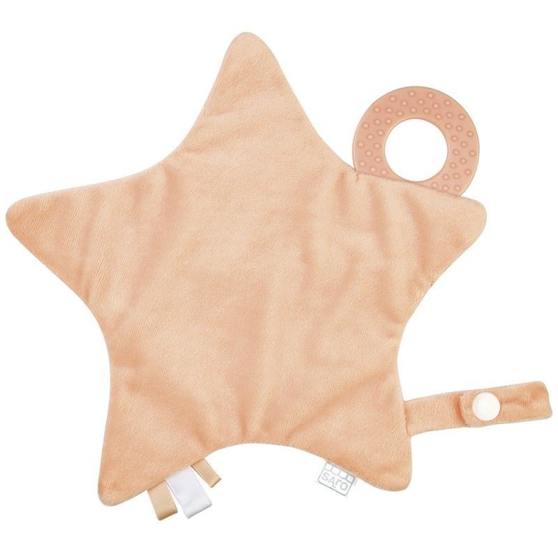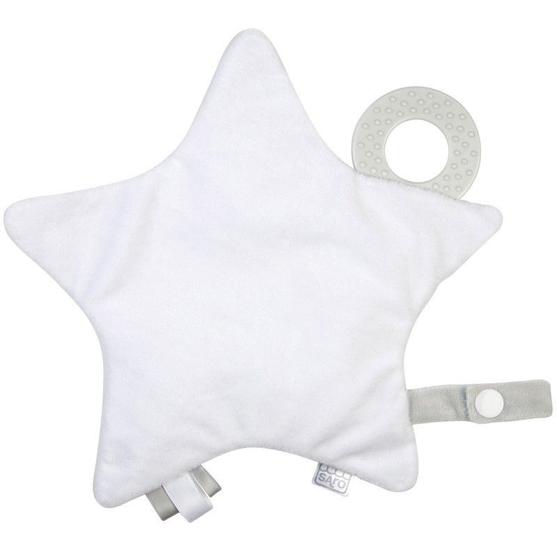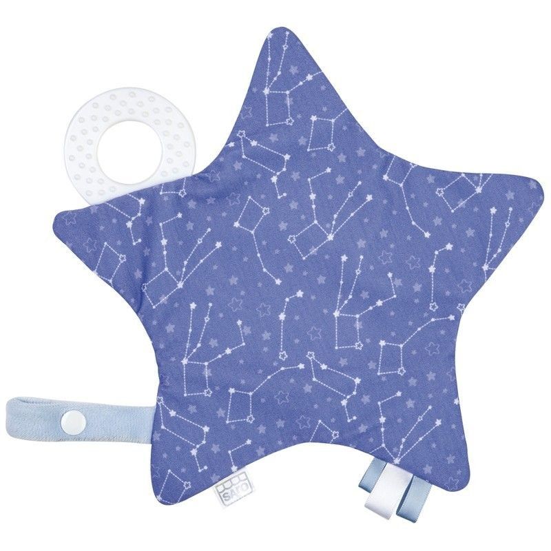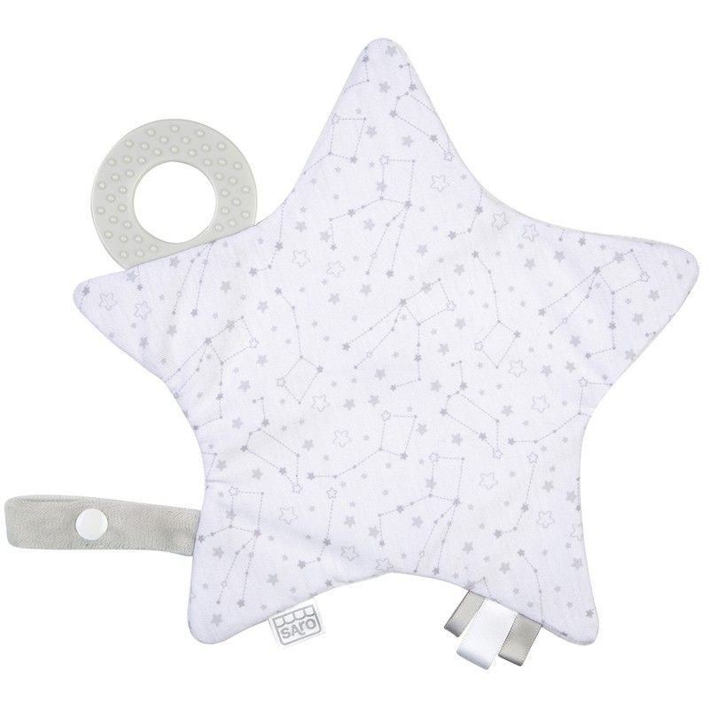Además, incluye un mordedor con textura que calmará sus encias y una cinta con corchete que te servi´ra para enganchar un chupete o un mordedor.