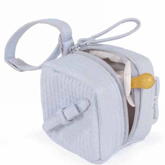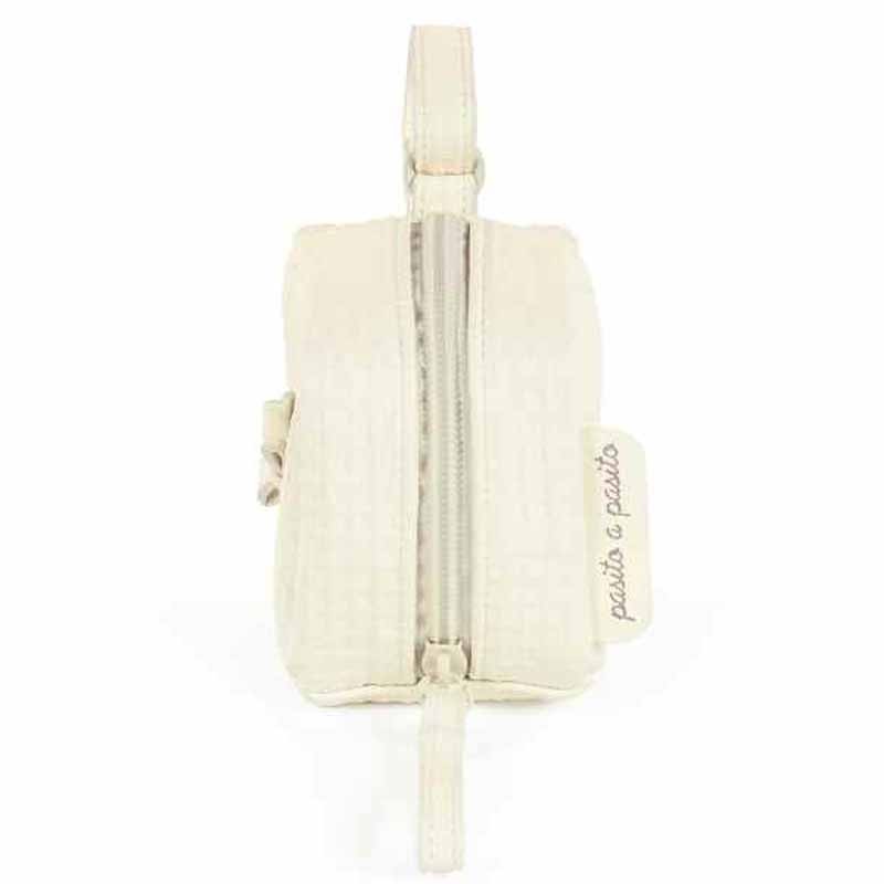 Con la funda chupete nido grabado de pasito a pasito podrás guardar el chupete de tu bebé y colgarlo en la bolsa de maternidad, cochecito, cuna o en cualquier lugar, gracias a su asa con broche.