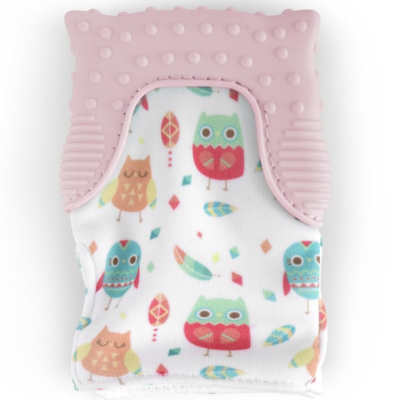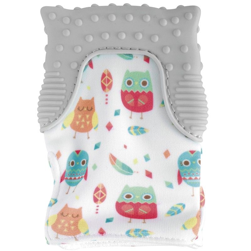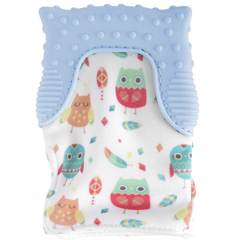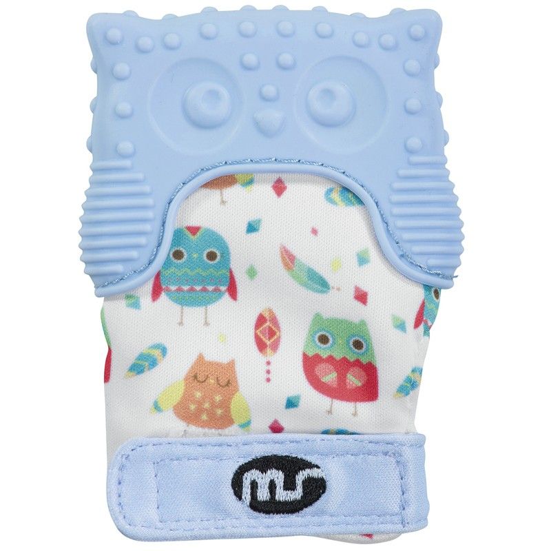 - La textura de la manopla de dentición y su superficie flexible de silicona están diseñadas para ajustarse a la boca del bebé, ofreciendo un sencillo acceso manoboca y proporcionando alivio ante la dentición. El velcro ajustable la mantiene sujeta a la mano del bebé.
