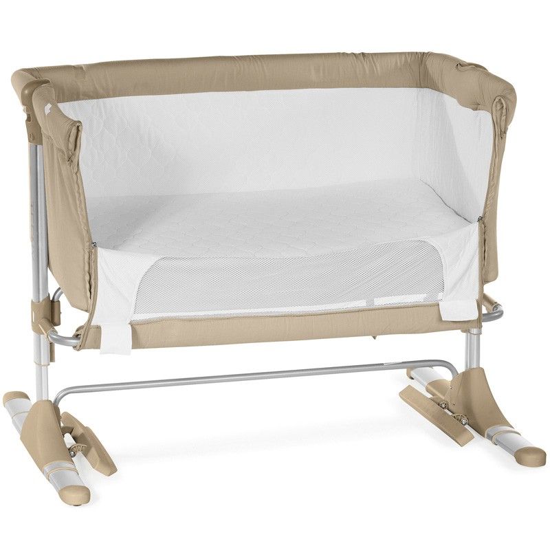 Una minicuna regulable en posiciones para adaptarse a la altura de la cama de los papás, tiene inclinación para que si es necesario permita al bebé respirar más facilmente, sus patas son articuladas para que la podamos poner en camas con cajoneras.