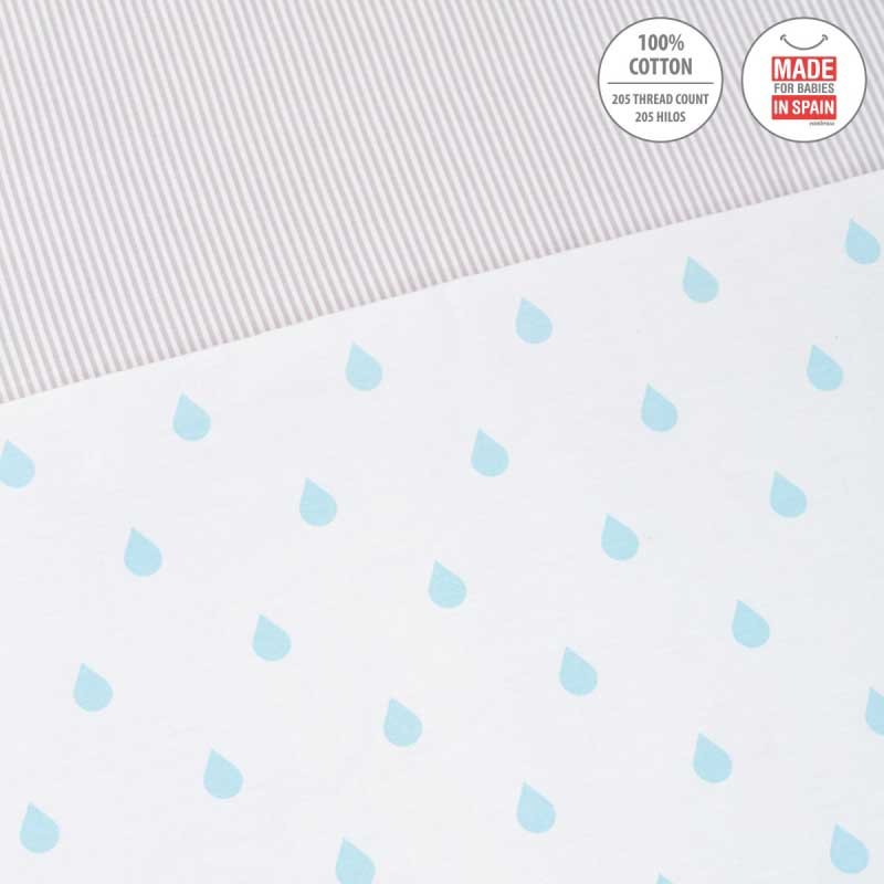 La minicuna Be Rain celeste con estructura en forma de aspa o tijeras de Cambrass está fabricada en madera de haya. Fabricada en España. La puedes adquirir en color rosa o en azul.