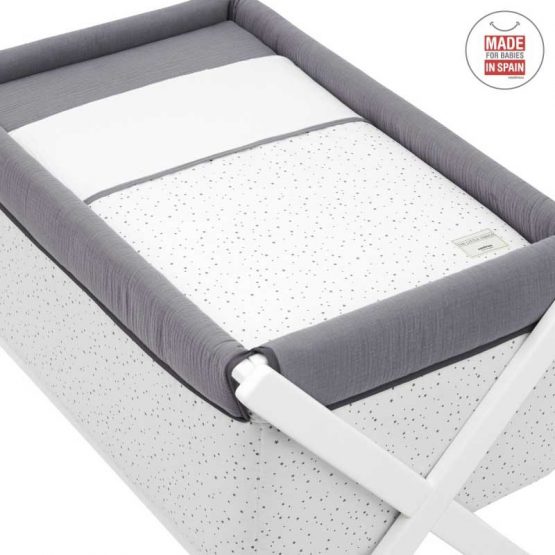 - La minicuna con estructura en forma de aspa de Cambrass está fabricada en madera de haya.