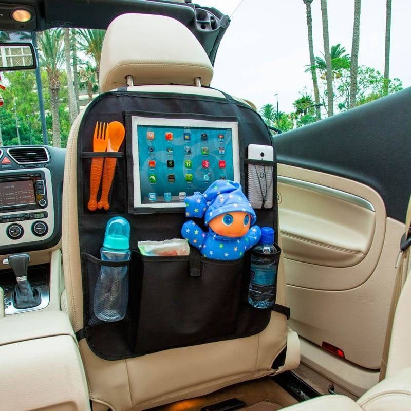 Organizador de asiento trasero para tener a mano todas las cosas que necesitas mientras viajas junto a tu bebé en coche.