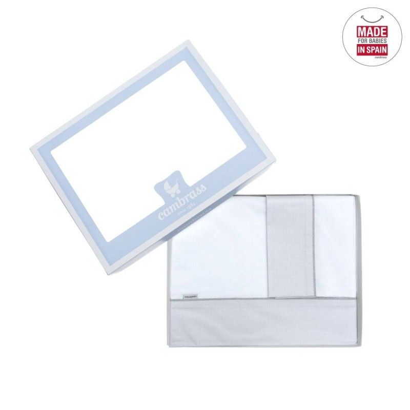 La Sábana cuna 3 piezas pará cuna de 60×120 cm de Cambrass es de algodón egipcio 100% lo que le aporta un tacto suave.
