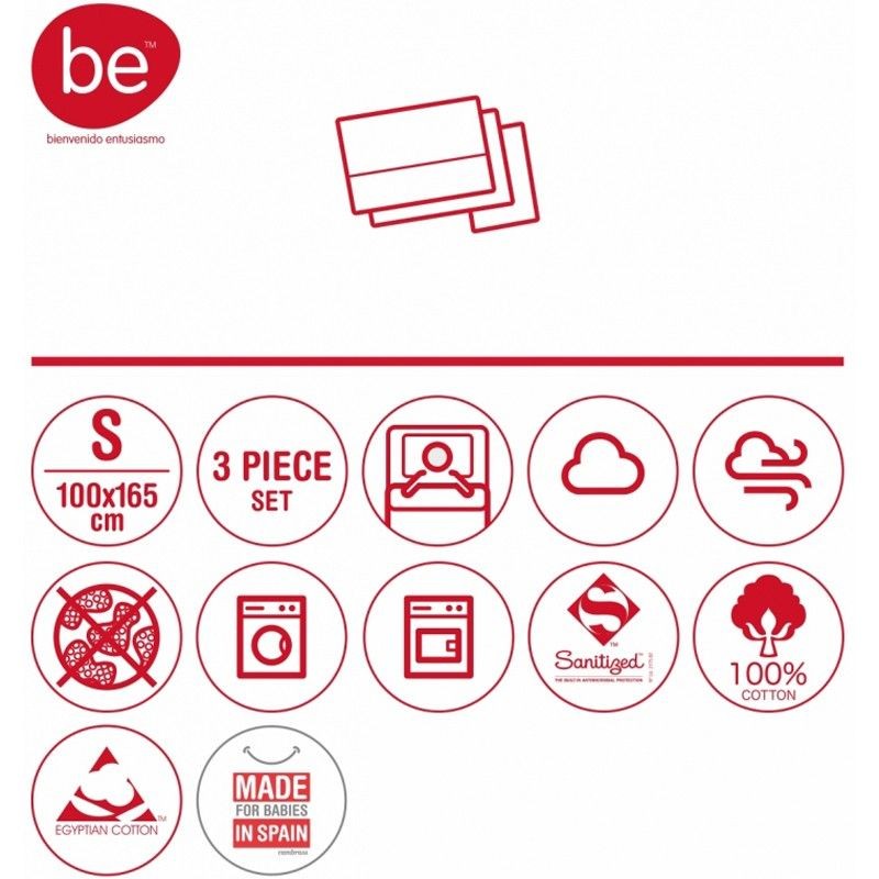 - El set está compuesto de sábana encimera, sábana bajera y funda para almohada.