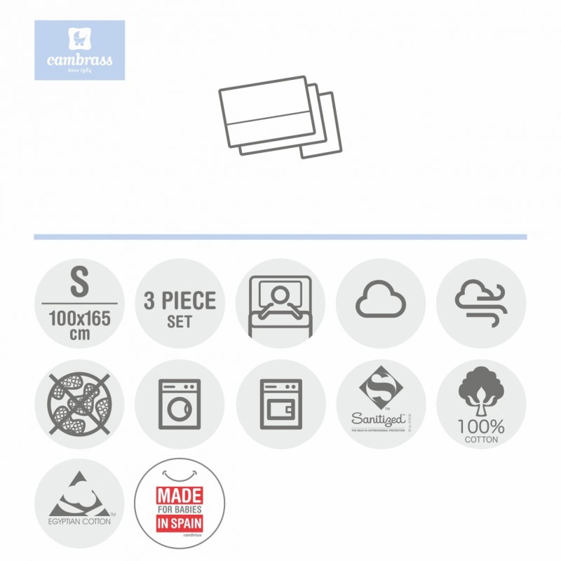 La Sábana cuna de tres piezas Dolce de Cambrass para cuna de 60 cm. está fabricada en algodón 100%.
