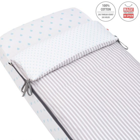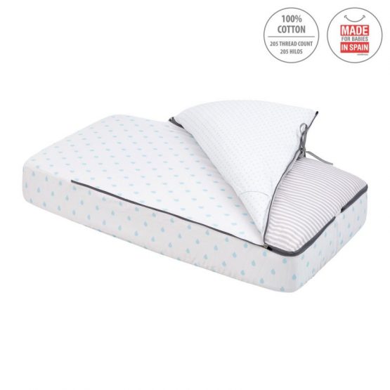 El Saco cuna invierno y verano sirve para cunas de 60×120 cm. Fabricado en España por Cambrass Rain Celeste lo tenemos disponible en color celeste