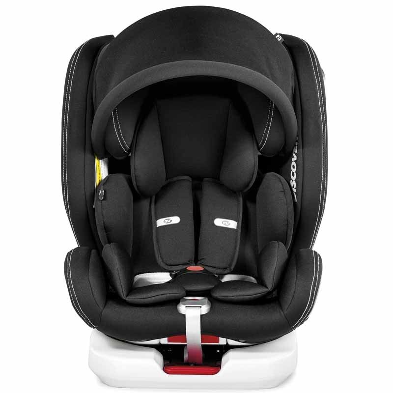La silla de auto DISCOVER es del grupo 0+1+2+3, giratoria 360º (desde que nace hasta los 36kg). Es dual y se puede instalar con los cinturones del coche de 5 puntos, o bien, con el ISOFIX y TOP-TETHER.