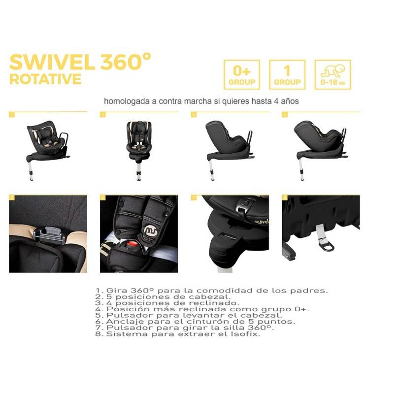 Características de la Silla Auto grupos 0 y 1Ms Swivel