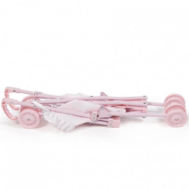 Saca a pasear a tus muñecas con la sillita de paseo Carlota pequeña con estampado de estrellas rosa, plegable con sistema de tijera, muy práctica.