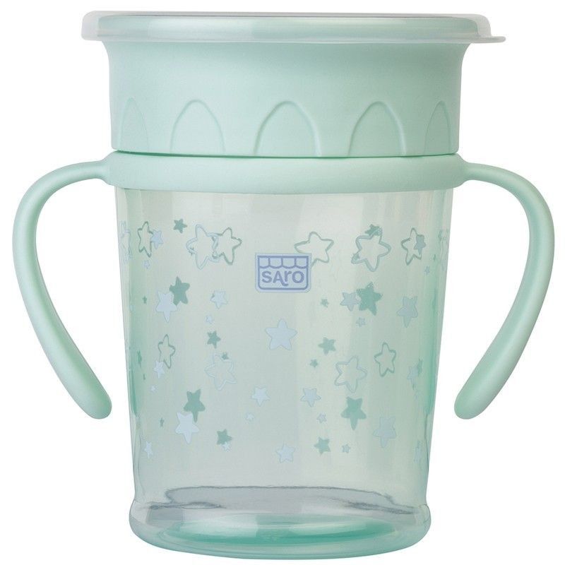 360º. Podra beber de él en cualquier punto del borde sin miedo a que derrame ni una sola gota.