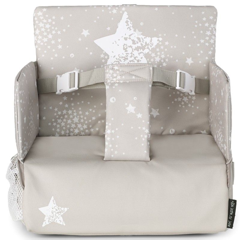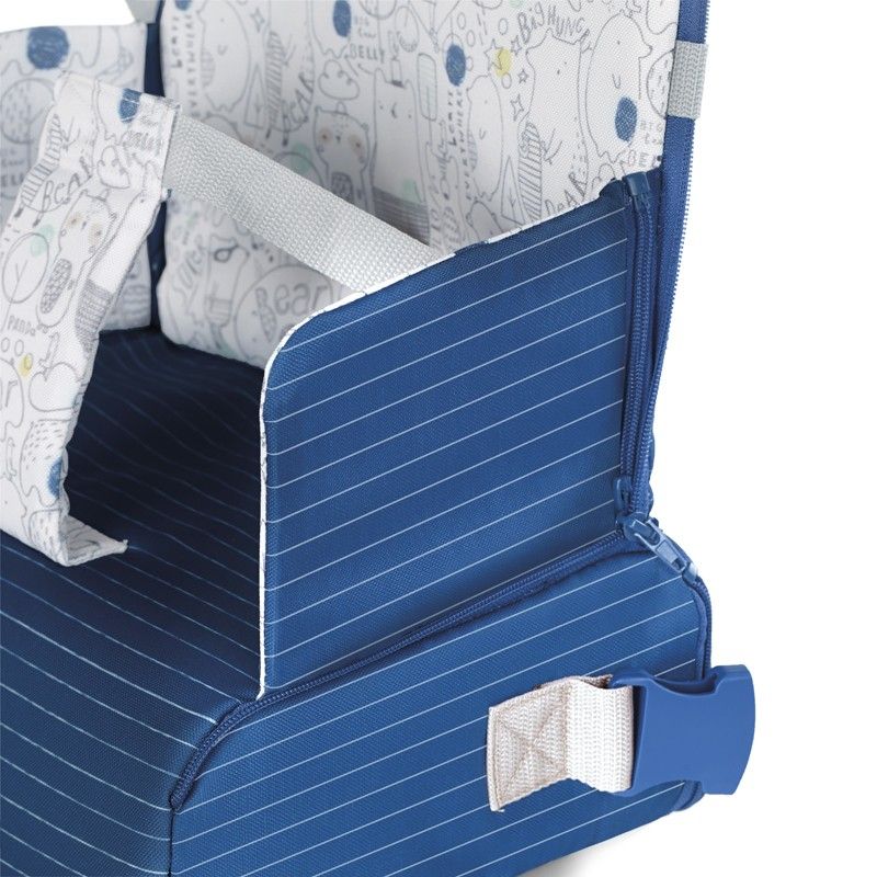 Se acopla a la silla del adulto por el asiento y el respalddo de forma rápida y segura.
